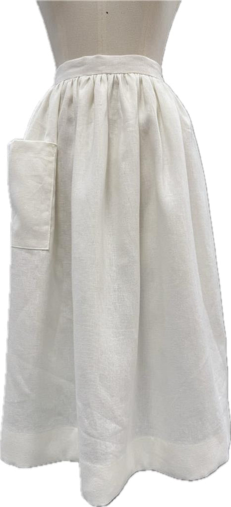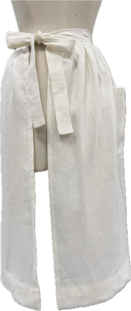 Natural white linen waist apron. Suitable for dying. Length from waist to hem 31” (79cm). One pocket.
